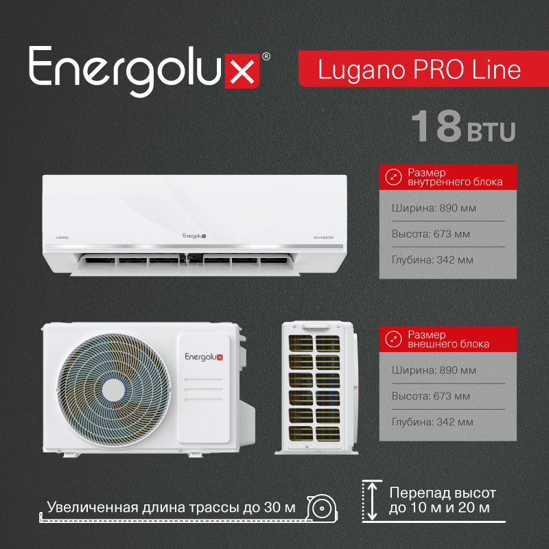 Серия Lugano Pro Line идеально подходит для регионов с нестабильным напряжением сети. Его уникальным преимуществом является стабильная работа в диапазоне напряжения от 80В до 264В (для моделей 9 и 12 мощности). Серия Lugano Pro Line характеризуется уверенной работой на обогрев при температуре наружного воздуха до -30°C. Для этого используется увеличенный теплообменник с высокопроизводительным компрессором с заводским подогревом картера компрессора и поддона наружного блока. Эта серия удобна для установки в местах, где не обойтись стандартной длиной фреонопровода. Максимальная длина между блоками допускается на расстоянии для 9 и 12 мощности – 25 м, для 18й – 30 м, а максимальный перепад высот составляет до 10 м и 20 м соответственно. Встроенный ионизатор последнего поколения может выделять в воздух до 2 миллионов положительных и отрицательных ионов. Они окружают и убивают бактерии, а затем превращают их в безвредные молекулы воды. Модели данной серии имеют Wi-Fi подготовку, высокий европейский класс энергоэффективности А+++ и антикоррозийное покрытие теплообменника Golden Fin, которое увеличивает срок службы кондиционера.